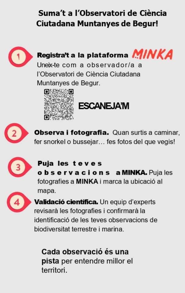 Qualsevol persona pot convertir-se en observadora de la natura. Només cal fotografiar plantes, animals o impactes ambientals, i compartir-nos les fotografies a través de la plataforma MINKA.